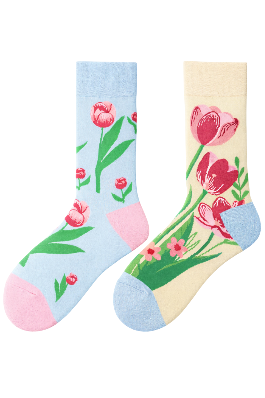 Product Description Garden Daydream: Tulip Socks Ladies Crew Style Mismatched Suitable size range: 7-11